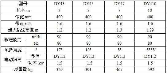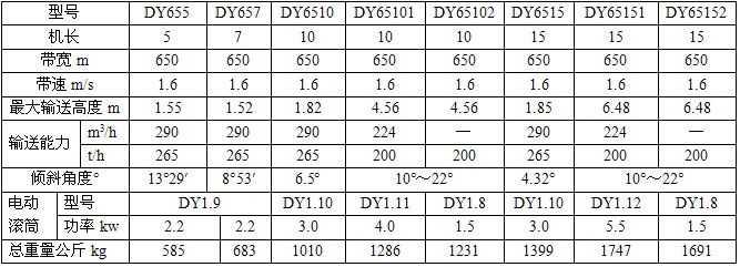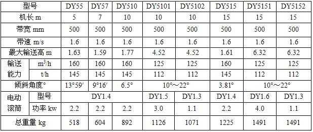 四、DY型移動(dòng)式皮帶輸送機(jī)技術(shù)參數(shù):
